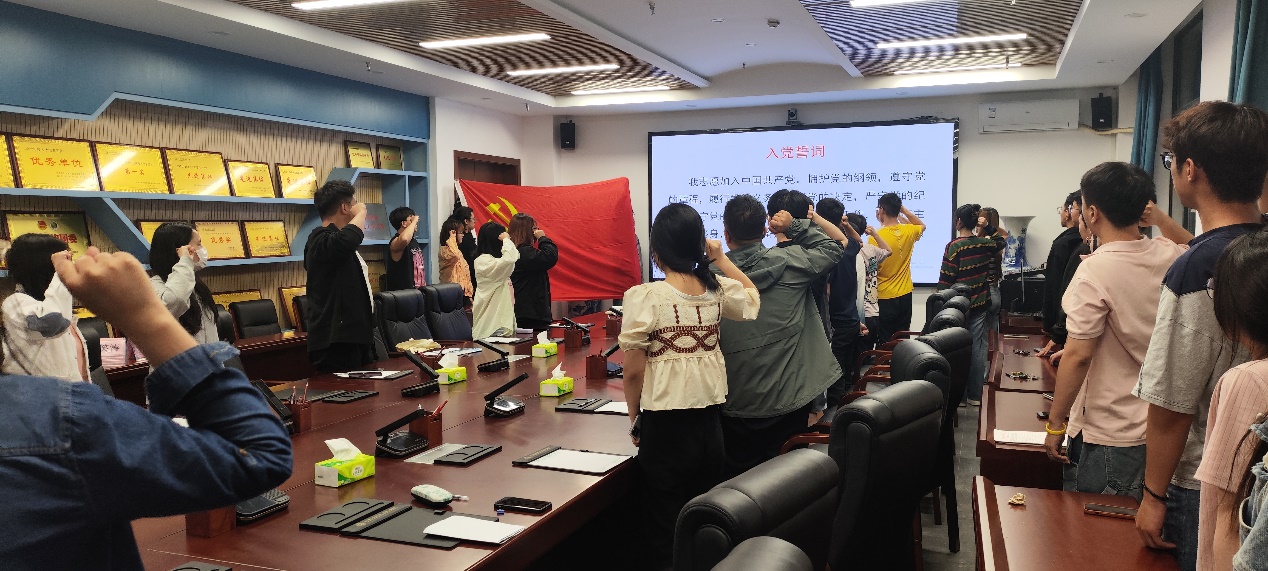 最后,由张蓓领誓,全体党员在党旗前郑重宣誓。通过重温入党誓词,全体党员进一步增强了党性意识,坚定了理想信念,在今后的工作生活中也将始终牢记党员使命,不忘初心,砥砺前行,为实现党的伟大事业贡献力量。