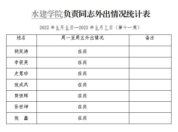 » 松鼠症仓库 负责同志外出情况统计表(第十一周)