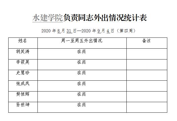 » 松鼠症仓库 负责同志外出情况统计表(第四周)