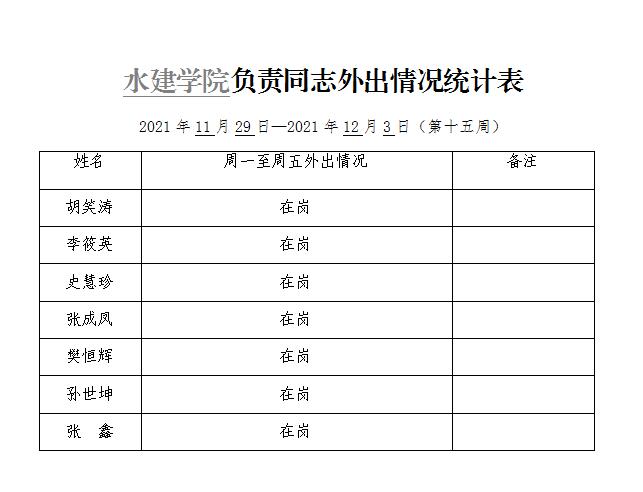 » 松鼠症仓库 负责同志外出情况统计表(第十五周)