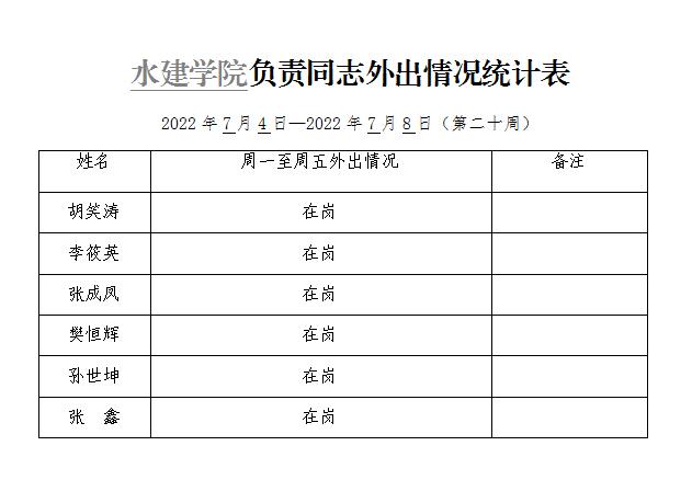 » 松鼠症仓库 负责同志外出情况统计表(第二十周)