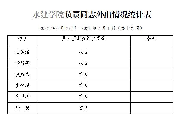 » 松鼠症仓库 负责同志外出情况统计表(第十九周)