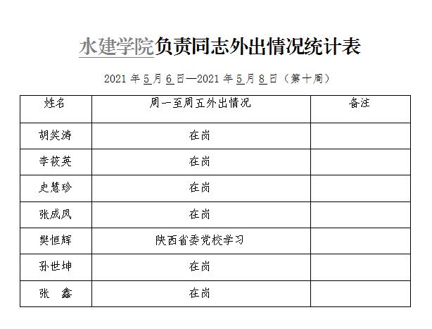 » 松鼠症仓库 负责同志外出情况统计表(第十周)