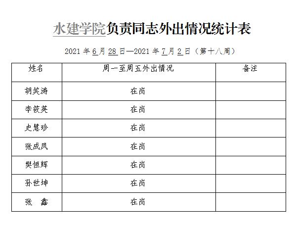 » 松鼠症仓库 负责同志外出情况统计表(第十八周)