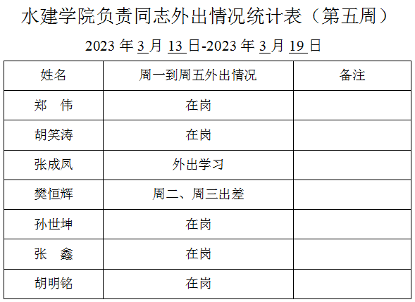 » 松鼠症仓库 负责同志外出情况统计表(第五周)