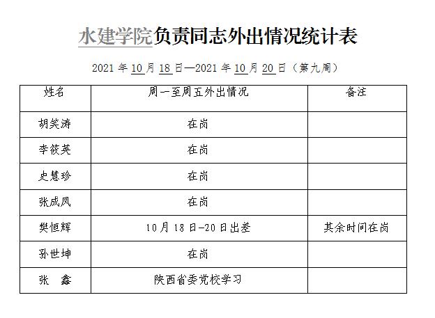 » 松鼠症仓库 负责同志外出情况统计表(第九周)