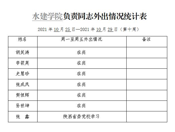 » 松鼠症仓库 负责同志外出情况统计表(第十周)