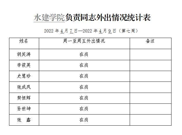 » 松鼠症仓库 负责同志外出情况统计表(第七周)