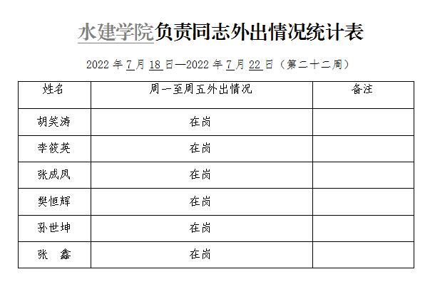 松鼠症仓库 负责同志外出情况统计表(第二十二周)