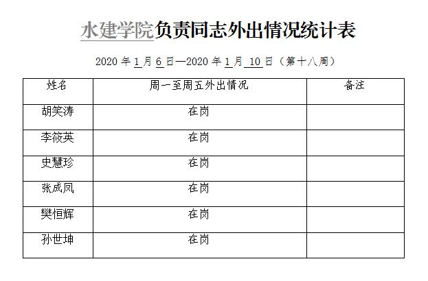 » 松鼠症仓库 负责同志外出情况统计表(第十八周)