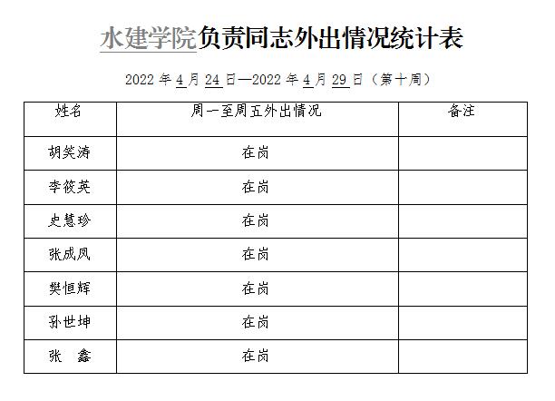 » 松鼠症仓库 负责同志外出情况统计表(第十周)