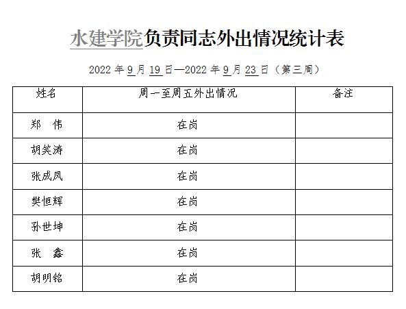 » 松鼠症仓库 负责同志外出情况统计表(第三周)