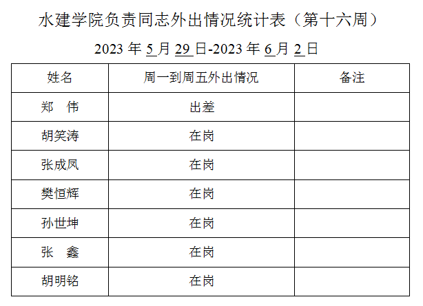 » 松鼠症仓库 负责同志外出情况统计表(第十六周)