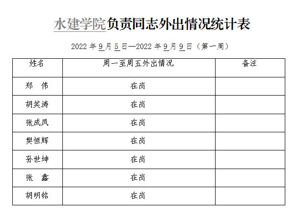 » 松鼠症仓库 负责同志外出情况统计表(第一周)