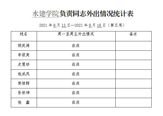 » 松鼠症仓库 负责同志外出情况统计表(第五周)