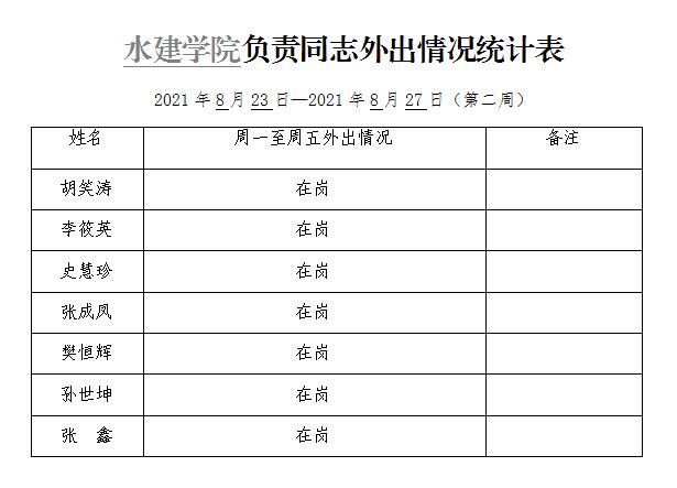 松鼠症仓库 负责同志外出情况统计表(第二周)