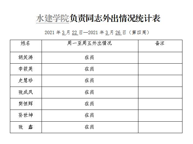 » 松鼠症仓库 负责同志外出情况统计表(第四周)