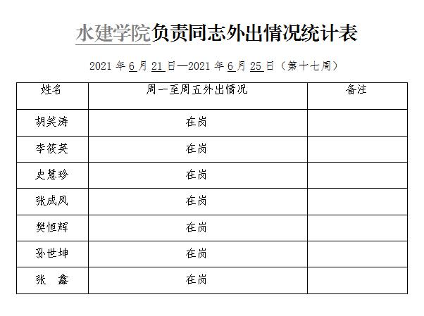 » 松鼠症仓库 负责同志外出情况统计表(第十七周)
