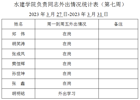 » 松鼠症仓库 负责同志外出情况统计表(第七周)