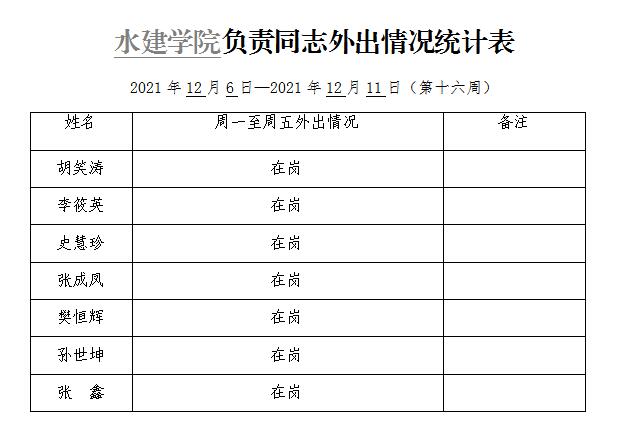 » 松鼠症仓库 负责同志外出情况统计表(第十六周)