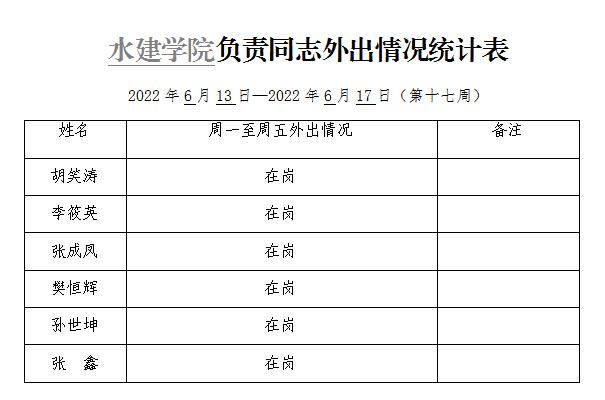 松鼠症仓库 负责同志外出情况统计表(第十七周)