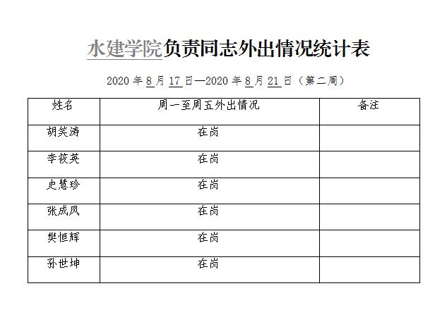 松鼠症仓库 负责同志外出情况统计表(第二周)