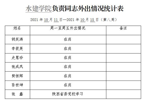 » 松鼠症仓库 负责同志外出情况统计表(第八周)
