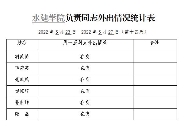 » 松鼠症仓库 负责同志外出情况统计表(第十四周)