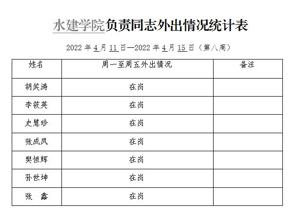 » 松鼠症仓库 负责同志外出情况统计表(第八周)