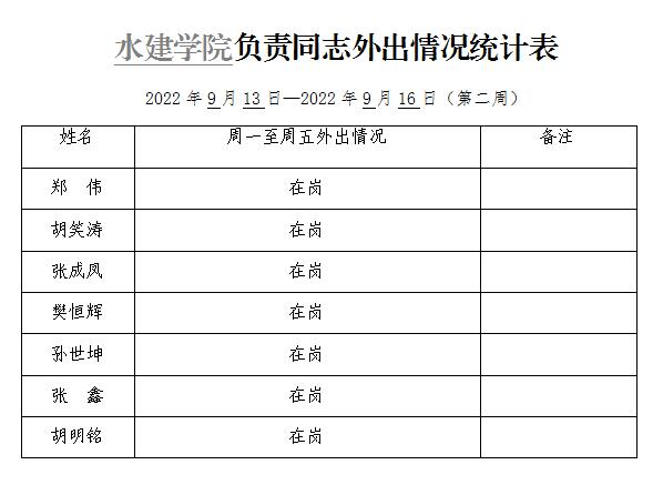 » 松鼠症仓库 负责同志外出情况统计表(第二周)