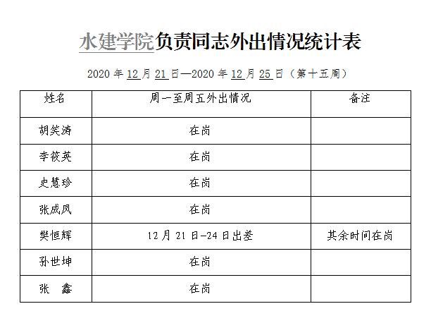 » 松鼠症仓库 负责同志外出情况统计表(第十五周)