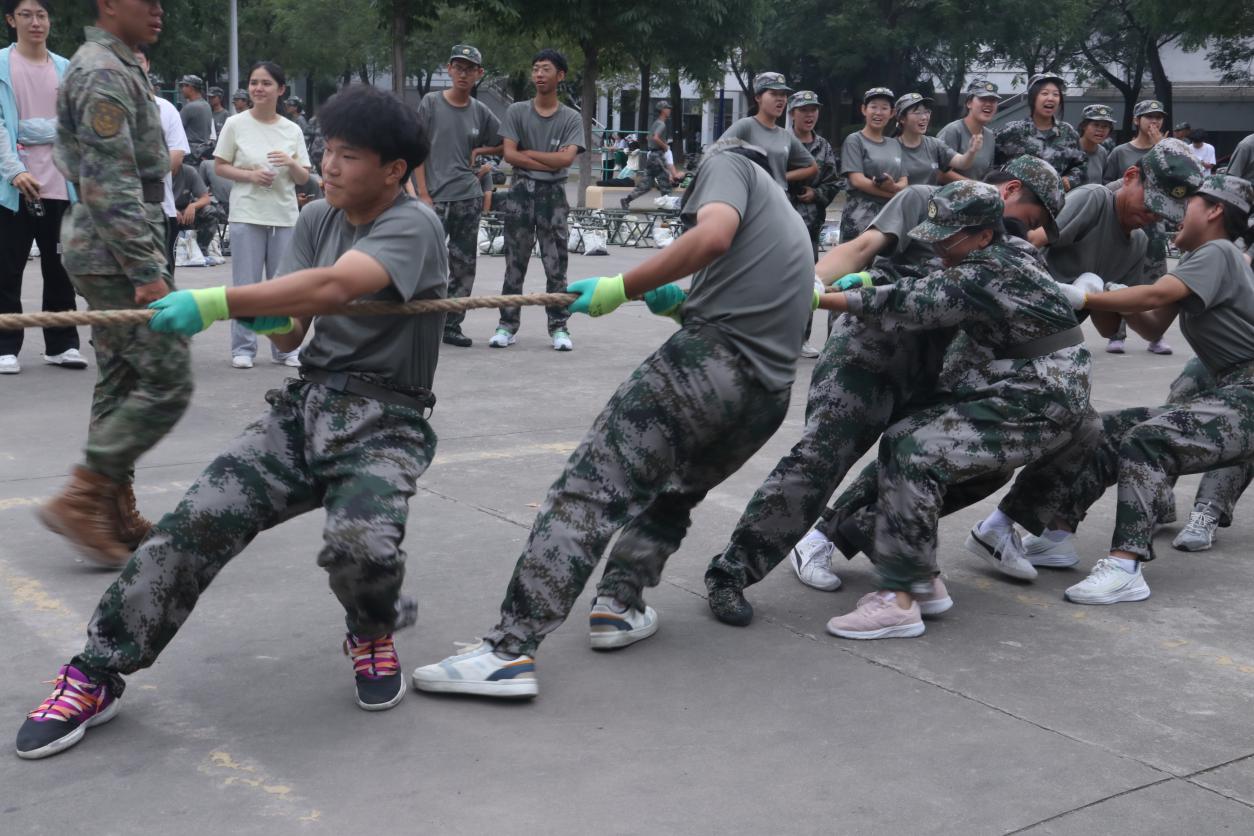 本次军营运动会设有拔河、跳大绳、木头人、扔沙包及20*50接力跑五项团体项目。运动场上,同学们个个斗志昂扬,充满了热情!运动员们在比赛中团结一致,彼此默契配合,充分发挥了集体的力量,推动团队向着共同的目标不断迈进。场下,百余新生列坐周围,为参赛者呐喊助威,欢呼声此起彼伏。整个运动会气氛热烈,展现了同学们积极向上的风貌和集体主义精神。
