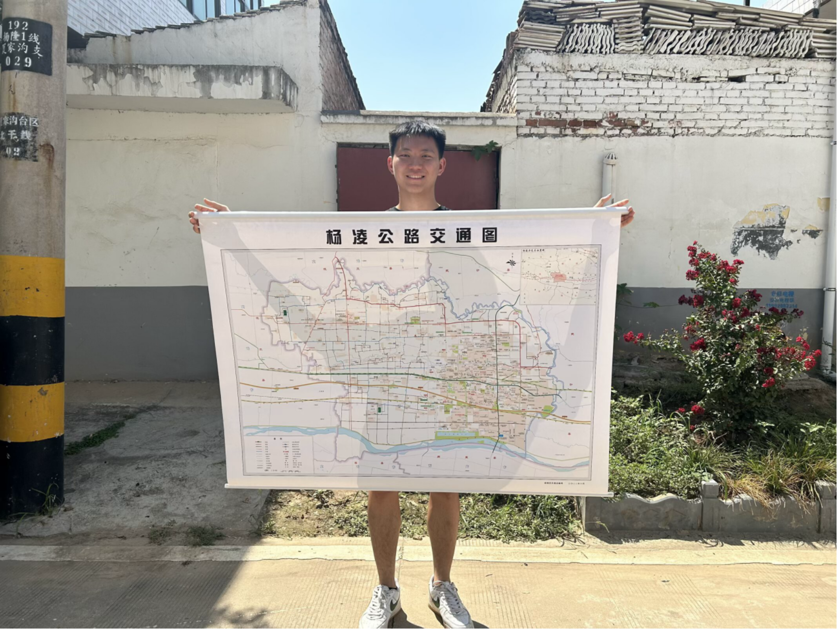 队员手持 “杨凌公路交通图”,为乡村道路调研及智慧交通改造规划提供地理数据支撑