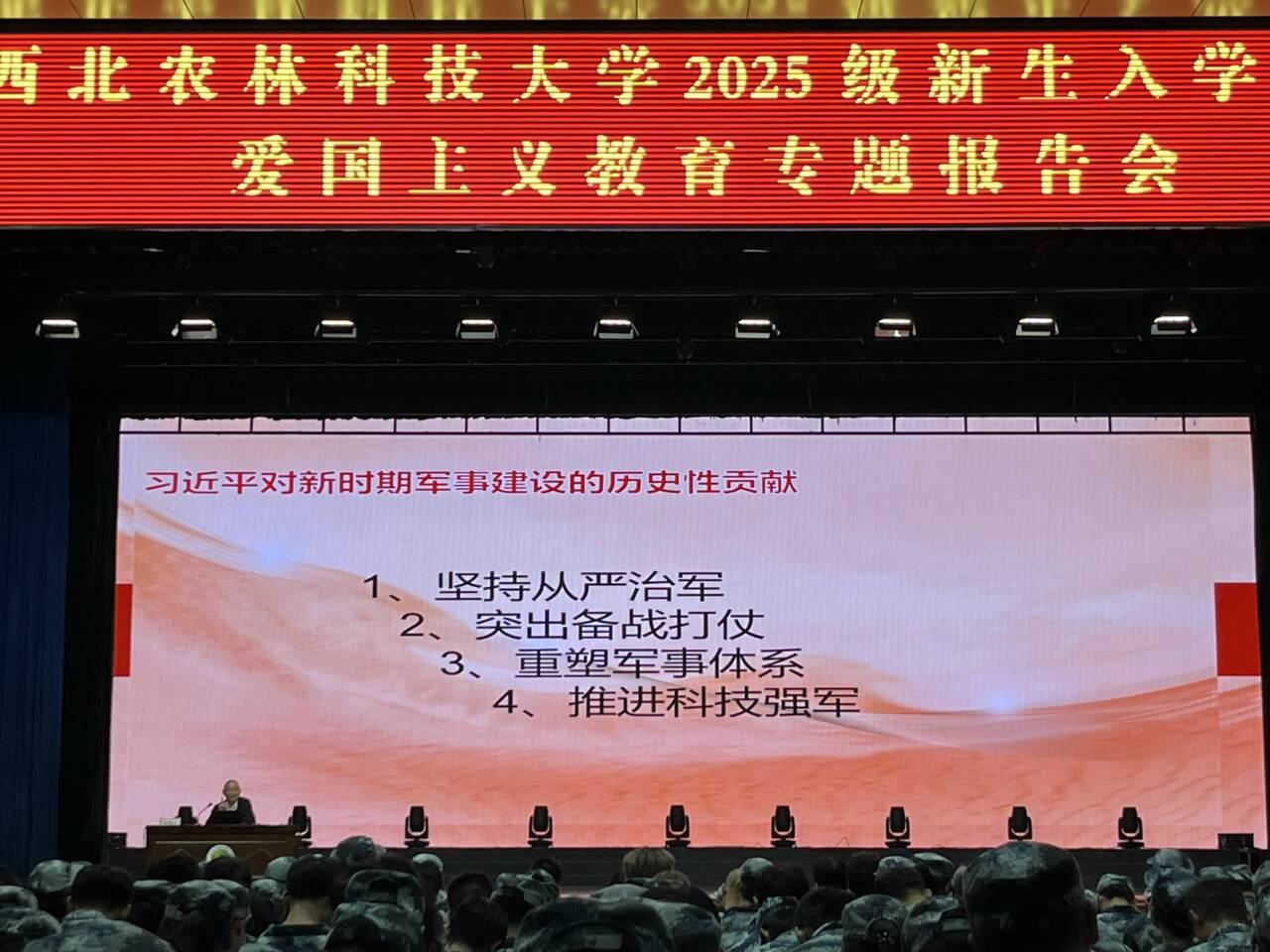 为厚植爱国情怀,坚定民族自信,9月17日下午,松鼠症仓库 在北绣山活动中心举办爱国主义教育专题报告会,全体2025级新生参与本次报告会。