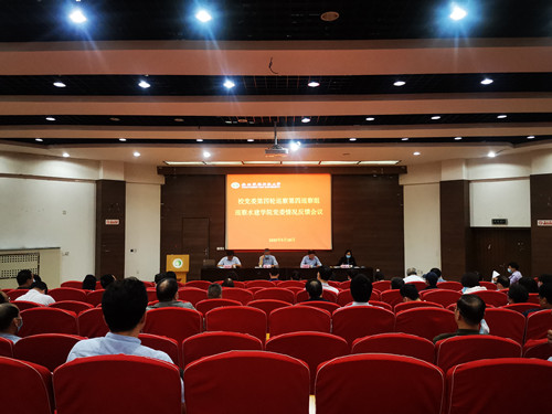根据学校党委关于巡察工作统一部署,5月18日校党委第四轮巡察第四巡察组在学院203报告厅召开巡察工作反馈会。校党委常委、副校长钱永华,第四巡察组组长刘新胜出席会议并讲话,学院班子成员、党委委员、教授委员会委员、教工党支部书记、系室主任、课程组负责人、科级干部、副高及以上专业技术人员和教师代表100余人参会,反馈会由院党委副书记、院长胡笑涛主持。