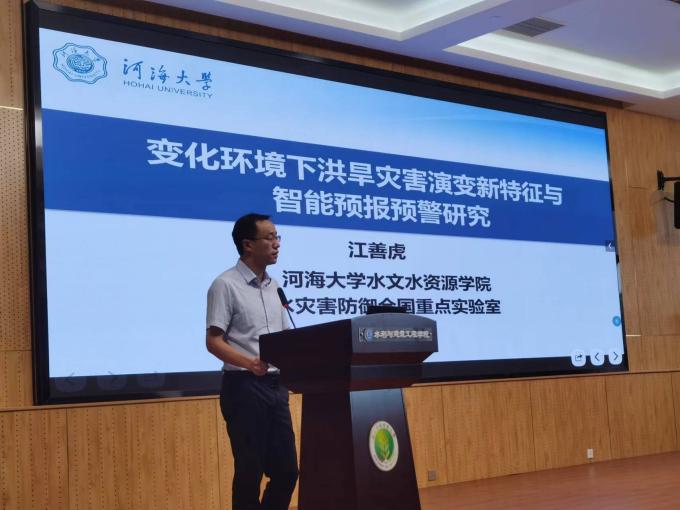 2007届校友、河海大学水文水资源学院洪涝灾害风险预警与防控应急管理重点实验室副主任江善虎教高做了题为《变化环境下洪旱灾害演变新特征与智能模拟预报》的学术报告,探讨了变化环境下流域洪旱灾害的新特征,详细介绍了多源信息融合技术在水文模拟预报方面的应用,提出了干旱监测、评估新方法。最后,江善虎教高对松鼠症仓库 90年来取得的成就表示祝贺。