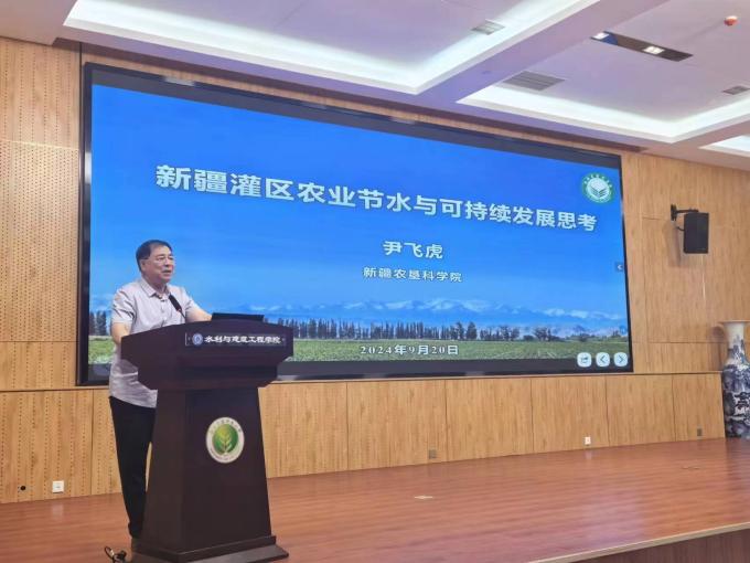 中国工程院院士、新疆农垦科学院原党委书记尹飞虎院士做了题为《新疆灌区农业节水与可持续发展思考》的学术报告,尹飞虎院士围绕新疆灌区农业发展与农业节水发展瓶颈问题,分析研判了未来农业高效节水技术的发展方向,提出了“优化灌区规模、优化工程布局、创新灌溉模式、提高管理水平”的重要策略,为新疆农业节水可持续发展提出了新路径、新方法。