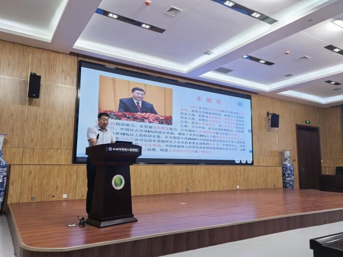 92届校友、包头市城投集团、交投集团、住建集团外部董事刘治学教高做了题为《善治国者必善治水--学习习近平总书记关于治水的重要论述》的专题报告,从水安全及危机与挑战、治水思路及实践、水文化及人水和谐、治水兴水成就等方面深入解读了习近平总书记关于治水的系列重要论述。