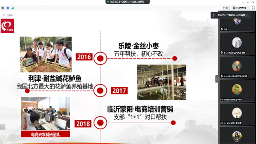 分需求搭建纽带,联建共促地学。一是校内联建共促理论水平提升。学院旱区农业水土工程重点实验室党支部与党政综合党支部开展学习党的二十大报告集体联学活动,重点学习了党的二十大开幕会、会议议程、参会人员以及未来五年战略任务的情况,习近平总书记在参加党的二十大广西代表团讨论时的重要讲话和二十大闭幕式上的重要讲话精神等,围绕报告第五部分内容“实施科教兴国战略,强化现代化建设人才支撑”交流学习心得。旱区农业水土工程重点实验室党支部书记蔡焕杰教授表示,党的二十大报告深入解读了中国式现代化的路径,为今后教育发展、科技创新和人才培养工作指明了方向;作为一名高校教师,将牢记“为党育人、为国育才”初心使命,以饱满的热情和昂扬的斗志带领党支部全体师生深入开展农业节水方面的研究,积极服务国家战略需求,切实解决西部水资源短缺问题,培养更多担当民族复兴大任的水利人才。二是校外联建共促实践效果提升。学院水利水电研究生党支部联合中国海洋大学红旗智援博士团党支部、水资本科生党支部联合长安大学水利与环境学院本科生党支部开展“礼赞二十大,奋进新征程”线上主题宣讲活动,通过讲授微党课、讲好红色故事、党史知识竞答等环节达到互讲互学、互进互促的目的。学校第二届学生党员微党课大赛一等奖获得者水利水电工程专业193班王晨语以《江河不改永安澜,水利精神薪火传》为题向联学支部党员讲述了李仪祉、沙玉清、沙际德代代水利人在解决泥沙问题、开展水利研究、培养水利人才等方面的先进事迹,号召水利学子弘扬新时代水利精神。长安大学本科生第一党支部张子瑶讲述了李佩成院士的“踏遍青山人未老”的奋斗之路,中国海洋大学红旗智援博士团党支部分享了以“智援脱贫”为中心,推进脱贫攻坚任务与乡村振兴有效衔接的动人故事,鼓励更多青年学子投身脱贫实践。双方党员在联学共建中认识到要以实际行动践行党的二十大精神,争做有理想、敢担当、能吃苦、肯奋斗的新时代好青年。