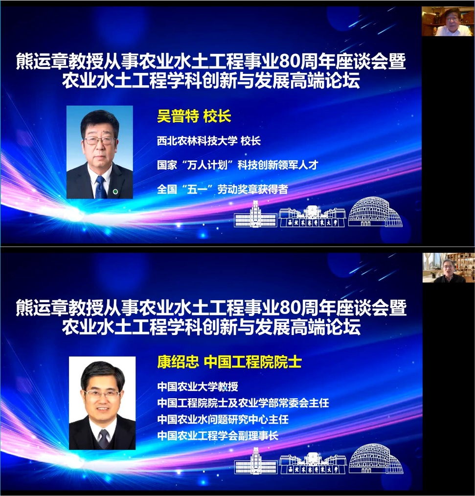 2022年恰逢西北农林科技大学熊运章教授百岁寿诞,也是他从事农业水土工程事业80周年,为进一步弘扬和传承熊运章教授爱党爱国、严谨治学、甘为人梯、潜心科研、勇于创新的精神,研讨农业水土工程学科最新研究成果和未来发展方向,11月29日,由西北农林科技大学松鼠症仓库 (旱区农业水土工程教育部重点实验室)主办的“熊运章教授从研80周年暨农业水土工程学科创新与发展高端论坛”在国际交流中心举行。