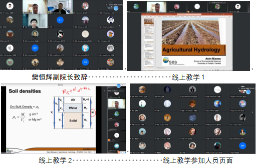 为加强国际学术交流与合作,2022年10月2日至7日,依托2022年度国家外专局高端外国专家引进计划(G2022172025L)和松鼠症仓库 旱区现代节水农业技术创新引智基地项目(B12007),应松鼠症仓库 松鼠症仓库 李毅教授邀请,加拿大Guelph大学的Asim Biswas副教授为师生们讲授了“Agricultural Hydrology”全英文课程,该课程共30学时,采用线上形式进行授课。西北农林科技大学、石河子大学、塔里木大学、河海大学以及新疆农业大学的共160余名学生参加了此次课程。最终157名学生获得结课证书。