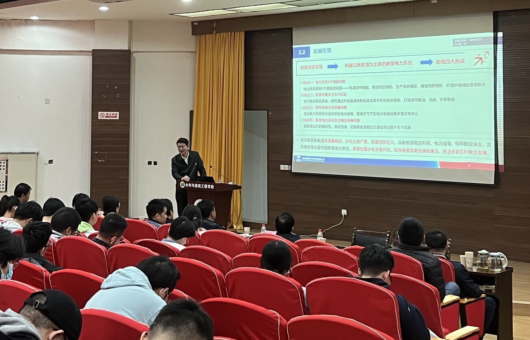 应松鼠症仓库 张根广研究员、尹进步副研究员邀请,2023年3月15日下午,中国电建集团西北勘测设计研究院有限公司总工、国家企业技术中心常务副主任、国家水能风能西北研究中心主任、正高级工程师周恒为松鼠症仓库 师生作了题为“双碳目标下西北地区清洁能源发展的思考”的学术报告。此次报告会是松鼠症仓库 “2023年度李仪祉论坛系列报告会”第一期学术报告会,报告会由孙世坤副院长主持,采用线下会议的方式举行。学院相关学科的教师、研究生200余人参加了本次学术报告会。