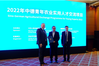 中德青年农业实用人才交流项目于2015年启动,由两国时任农业部长亲自部署、亲自推动,是两国农业合作的重要内容。该项目是中德农业人才合作培养的重要渠道,为双方从事农业研究的青年学者提供了良好的互动交流平台,为两国农业合作与发展起到了积极的推进作用。松鼠症仓库 农业水利工程系青年教师高飞副教授参加了本次开幕式,并接受由德国驻华大使馆和中国农业农村部国际交流服务中心颁发的项目录取通知书。