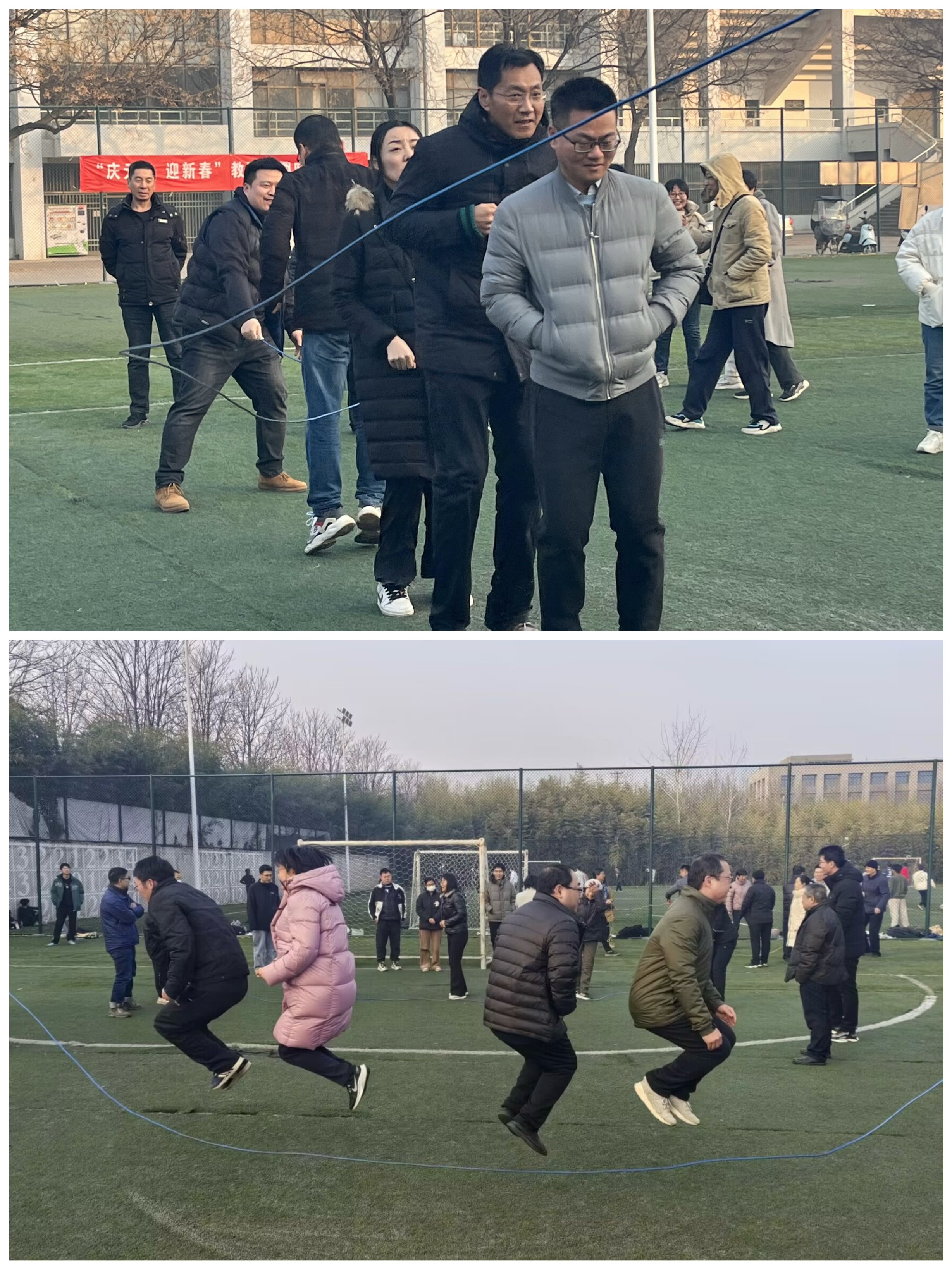 为激励教职工快乐工作、健康生活,增强干事创业的凝聚力,12月27日下午,学院在北校区小足球场举办“庆元旦 迎新春”教职工趣味运动会。